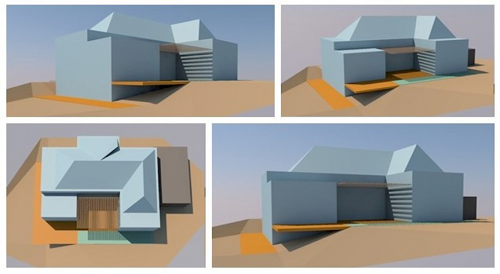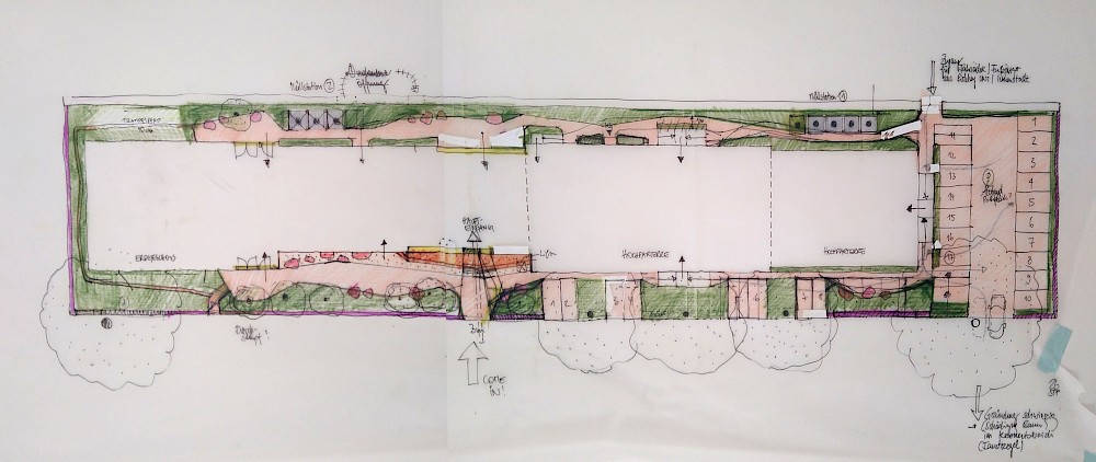 In der ursprünglichen Planung war die Erweiterung durch einen zweiten identischen Gebäudeteil vorgesehen.