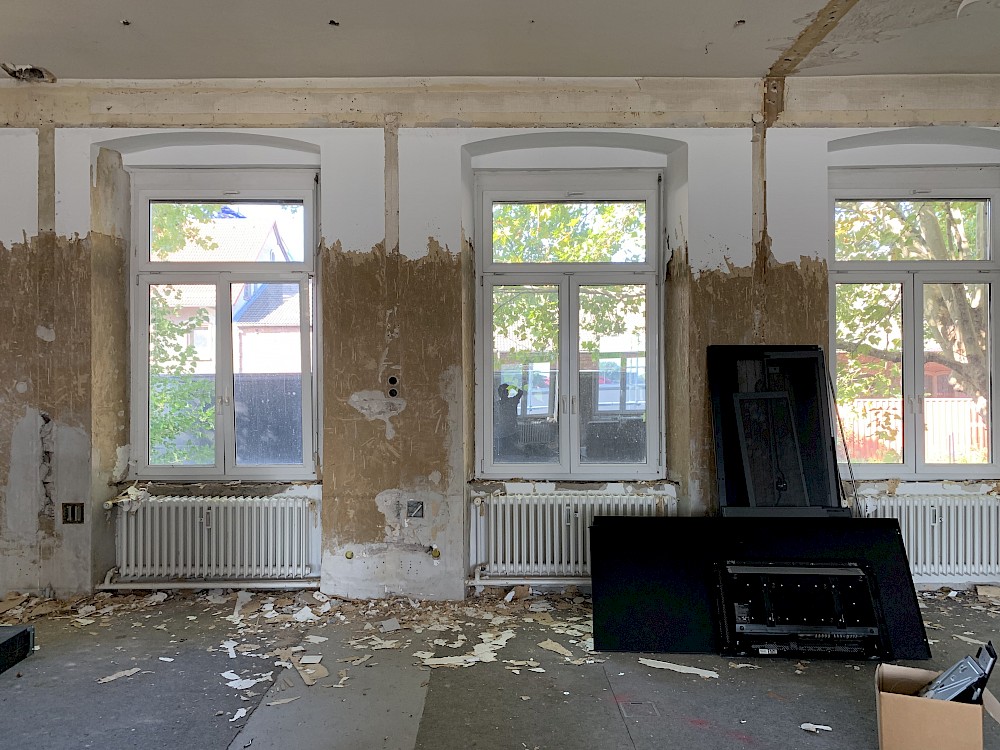 Der Kopfbau des Gebäudes wurde früher als Supermarkt betrieben.
