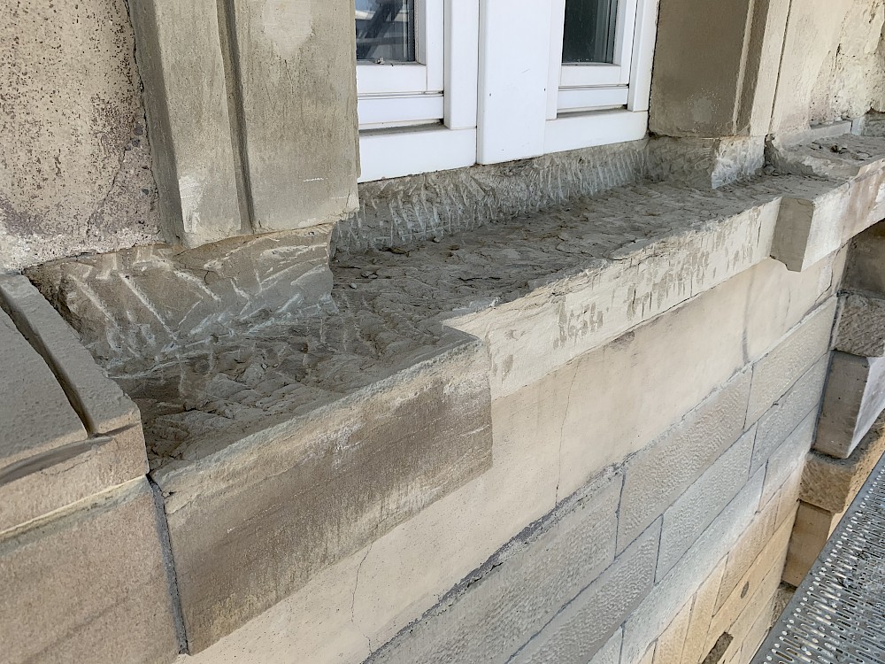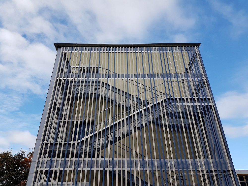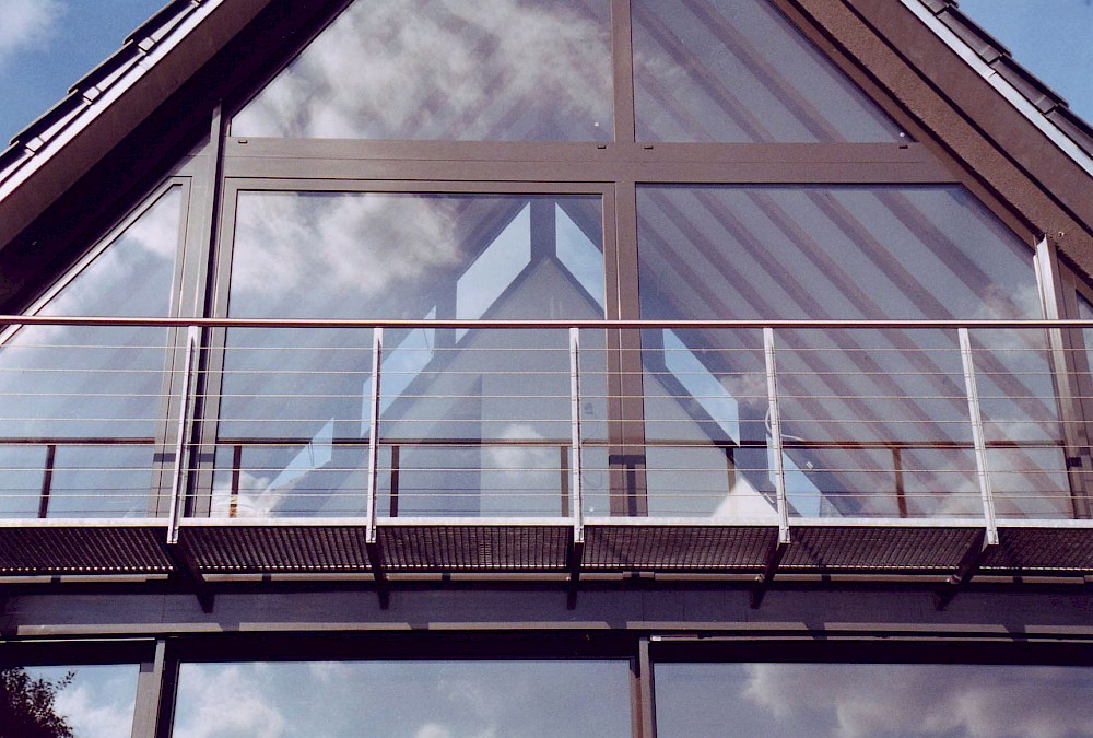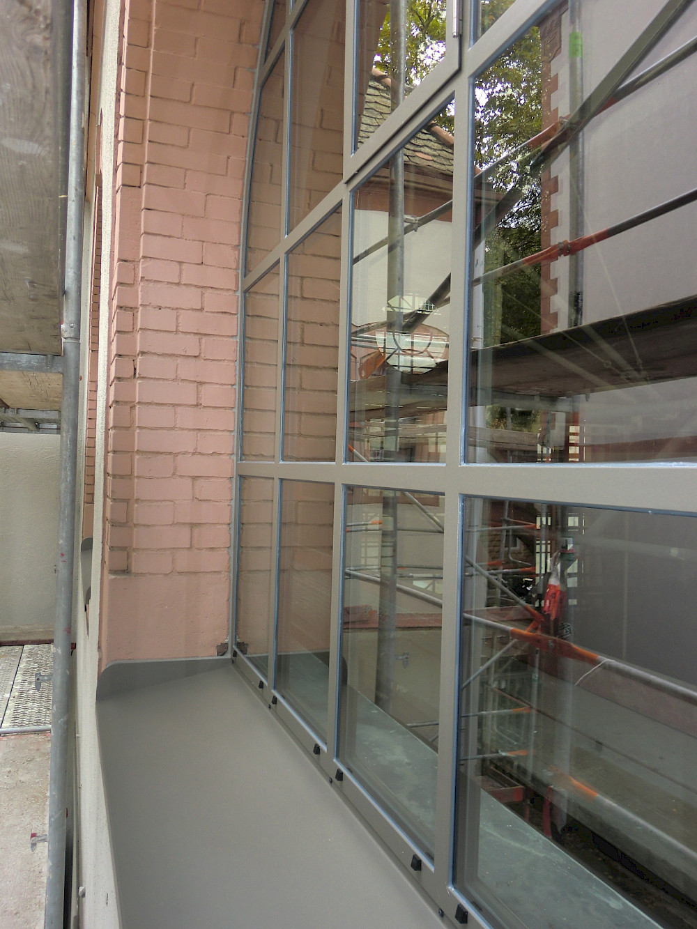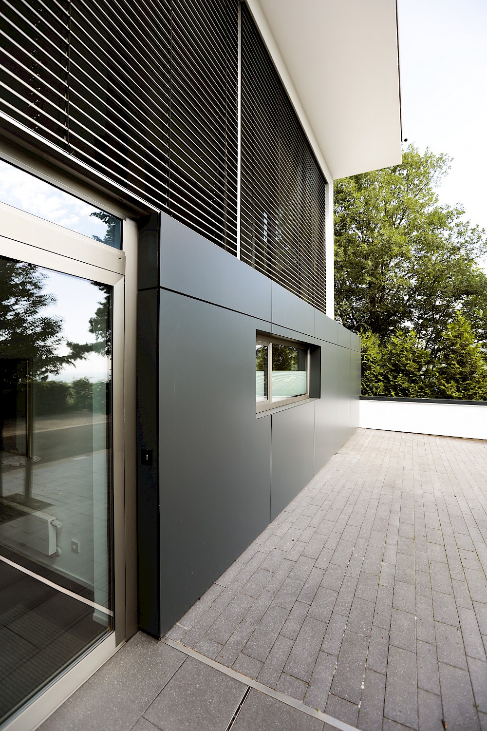Der Neubau nimmt als Erweiterungsbau einerseits Elemente des vorhandenen Gebäudeteils auf (Fassadenfluchten, Höhenstaffelung, Dachform, Dachneigung, Traufhöhen),