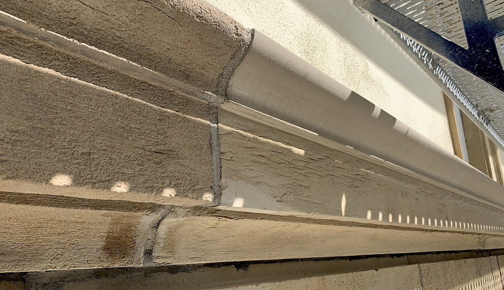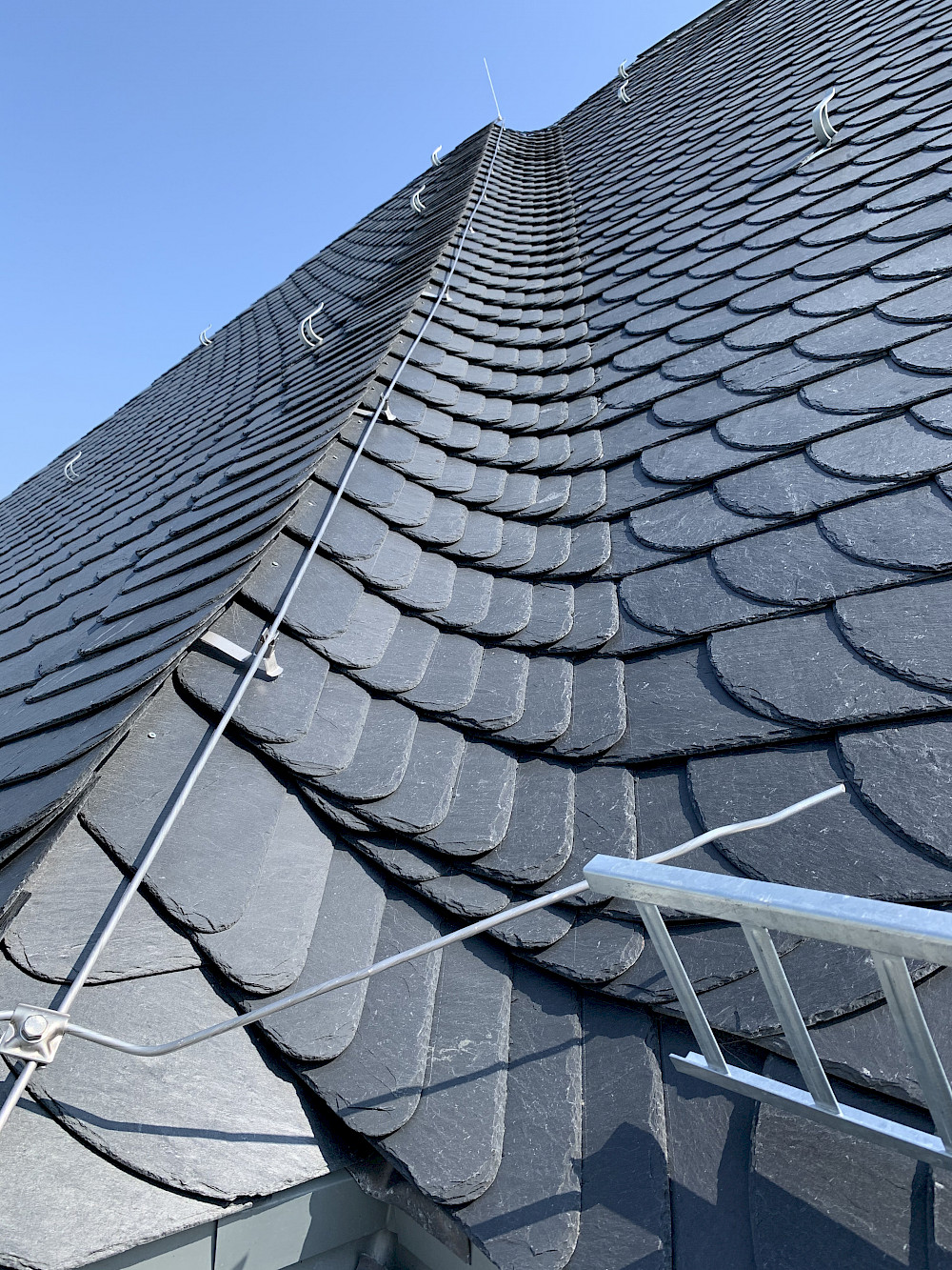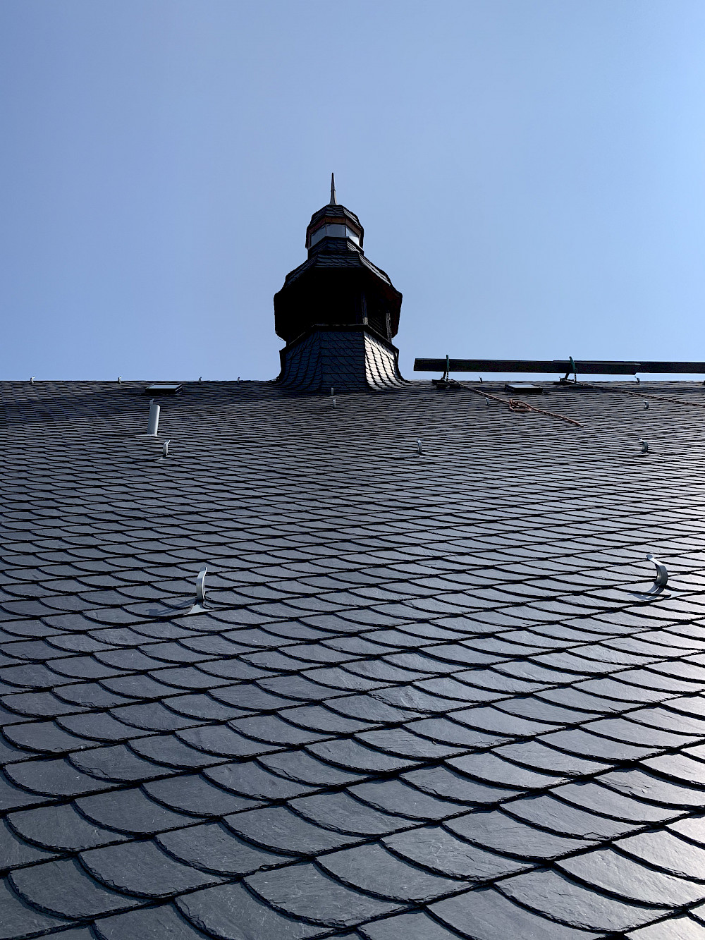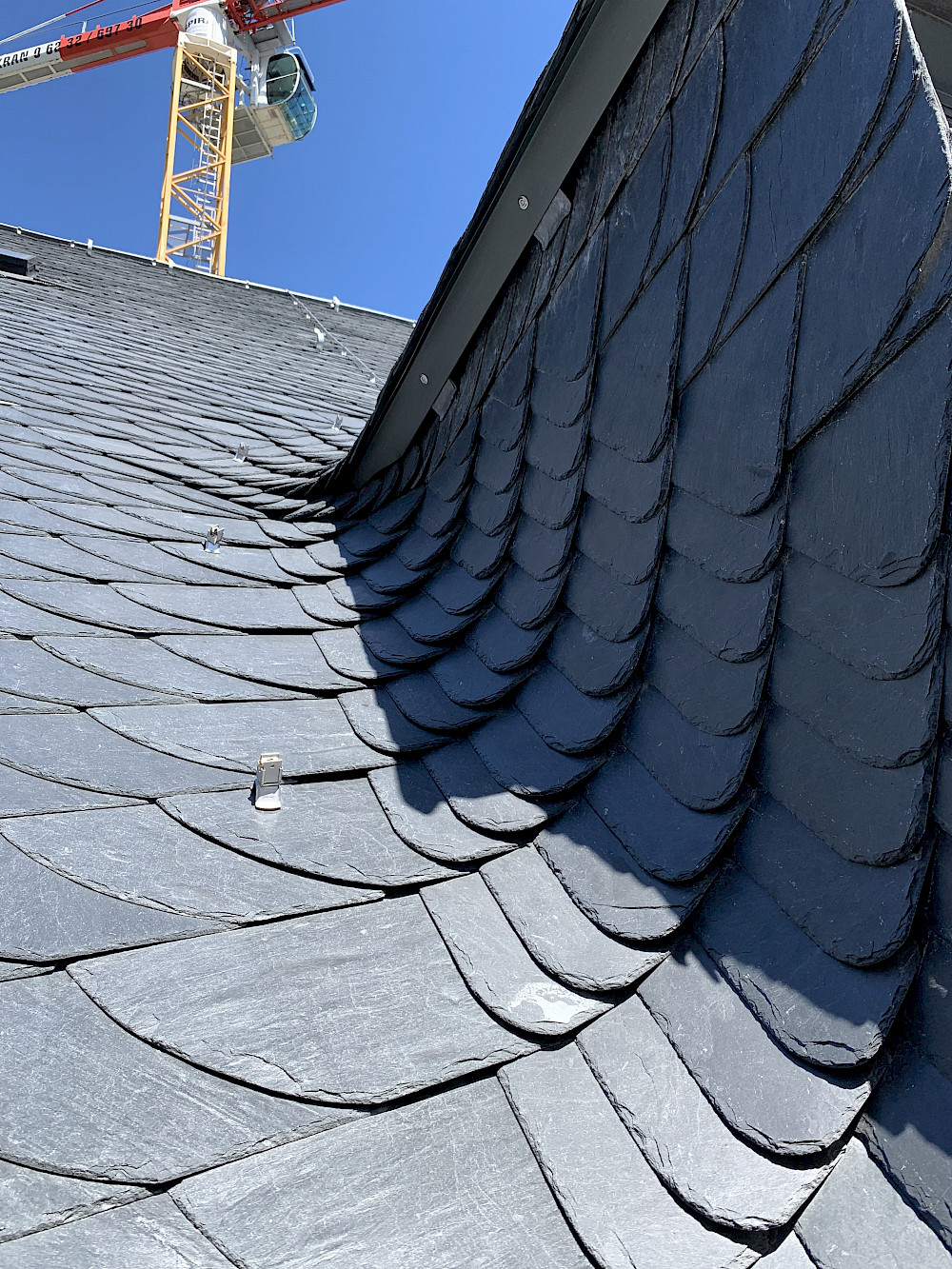 Der Neubau nimmt als Erweiterungsbau einerseits Elemente des vorhandenen Gebäudeteils auf (Fassadenfluchten, Höhenstaffelung, Dachform, Dachneigung, Traufhöhen),