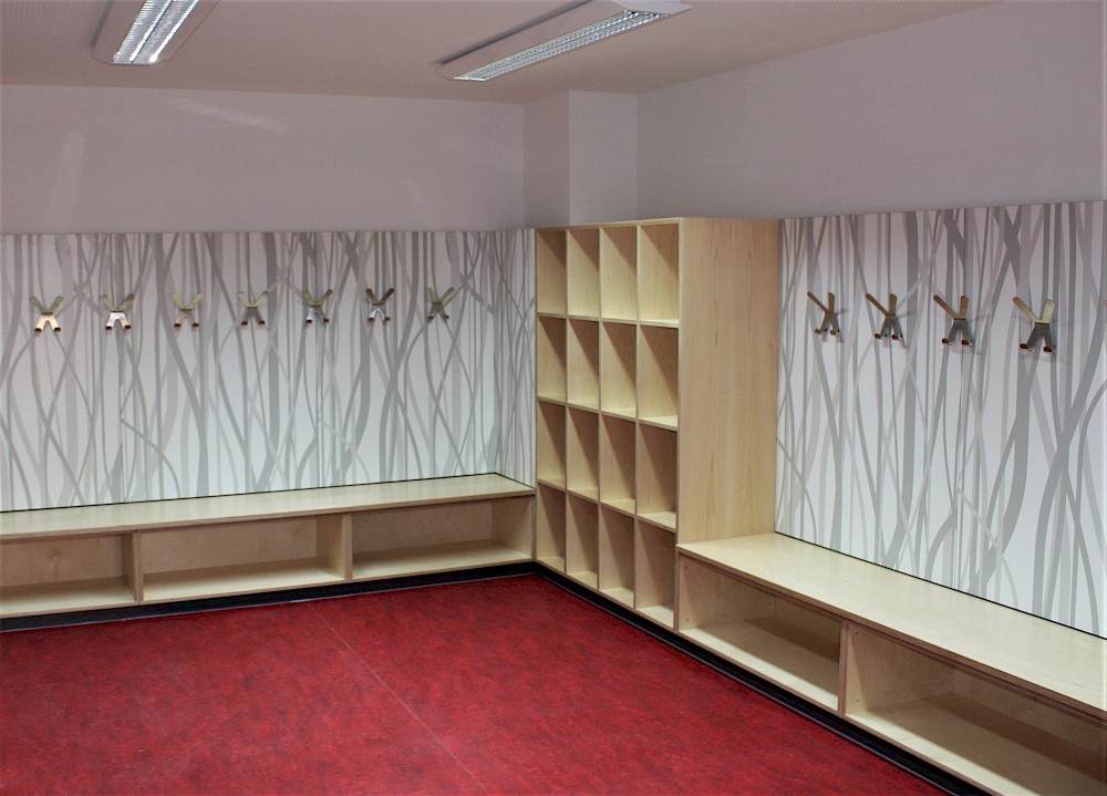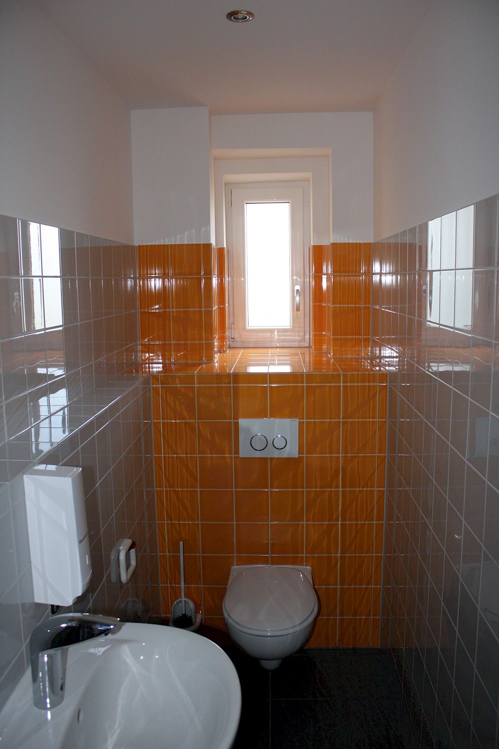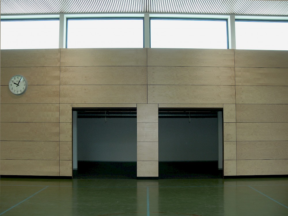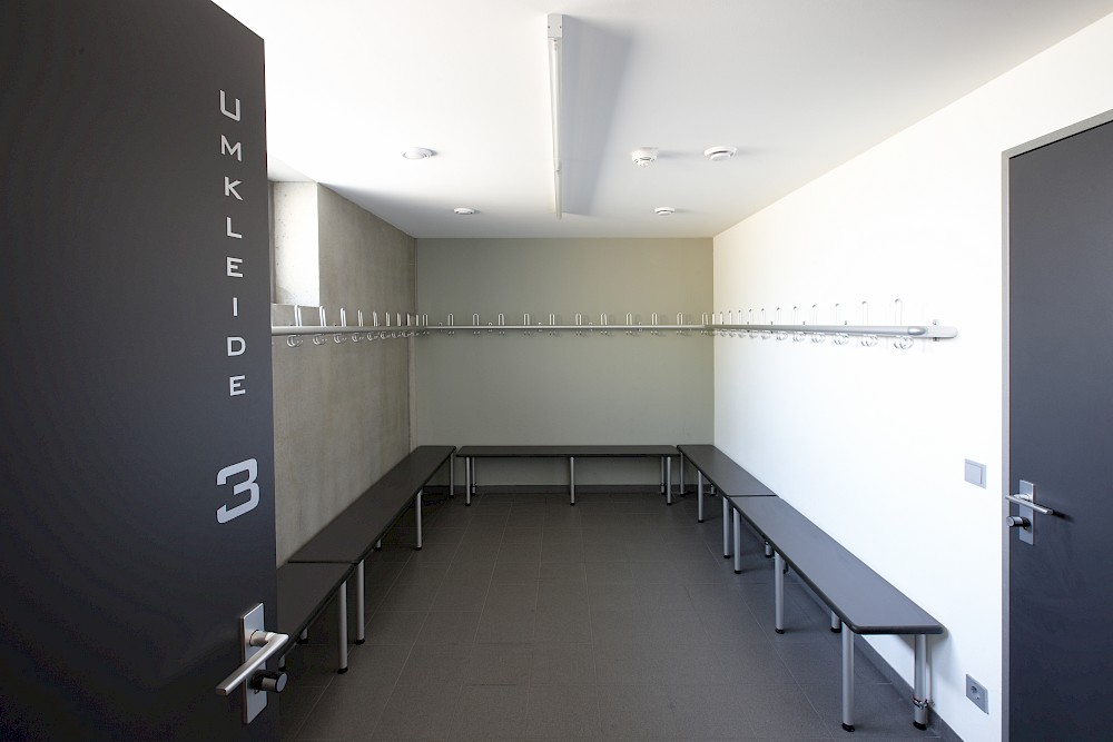 Im Obergeschoss sind Vereinsräume Umkleiden und Duschen untergebracht. Umkleideräume und Duschen werden von der Gemeinde und den Vereinen genutzt.