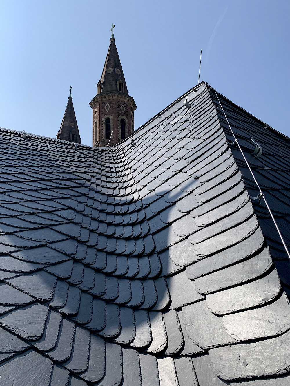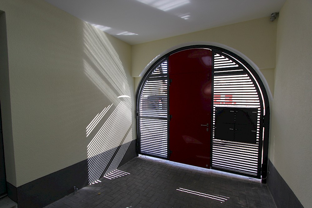 Neu ist ein zweiseitiger, gemeinsamer Zugang in der Fuge zwischen der Kirche und der Nachbarbebauung, sodass Kirche und Umfeld voneinander profitieren und das "neue Gemeindeleben" gestärkt wird. Der neue Eingang der Kirche liegt auf ihrer Mittelachse.