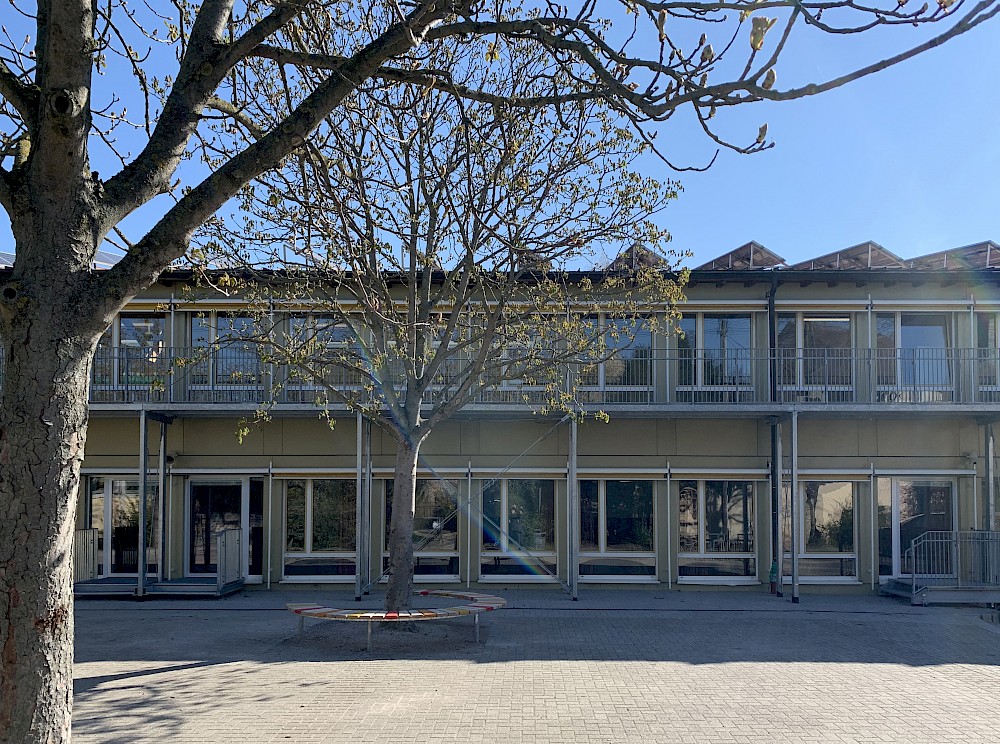 Erweiterung der Kindertagesstätte Karl-Dillinger-Straße 7, Ludwigshafen-Oggersheim, durch einen neuen Gebäudeteil.