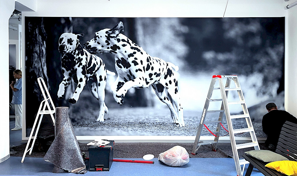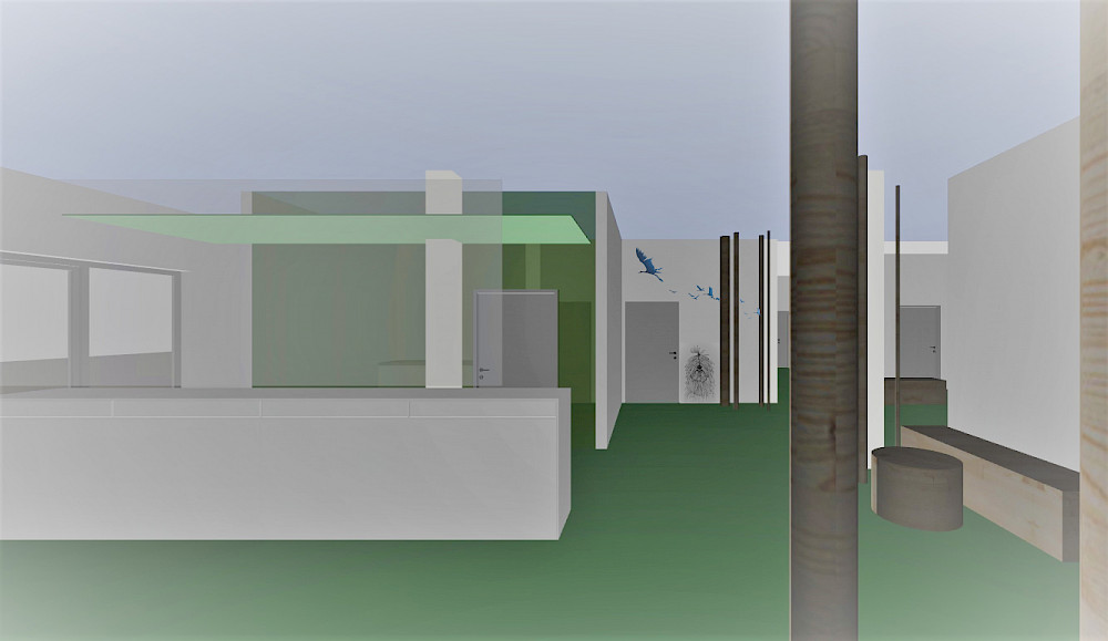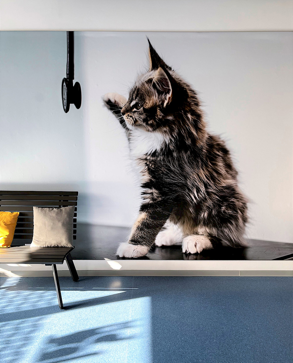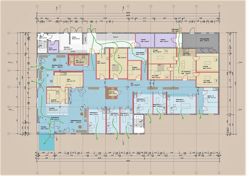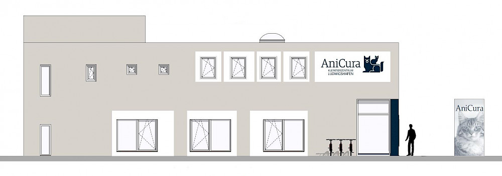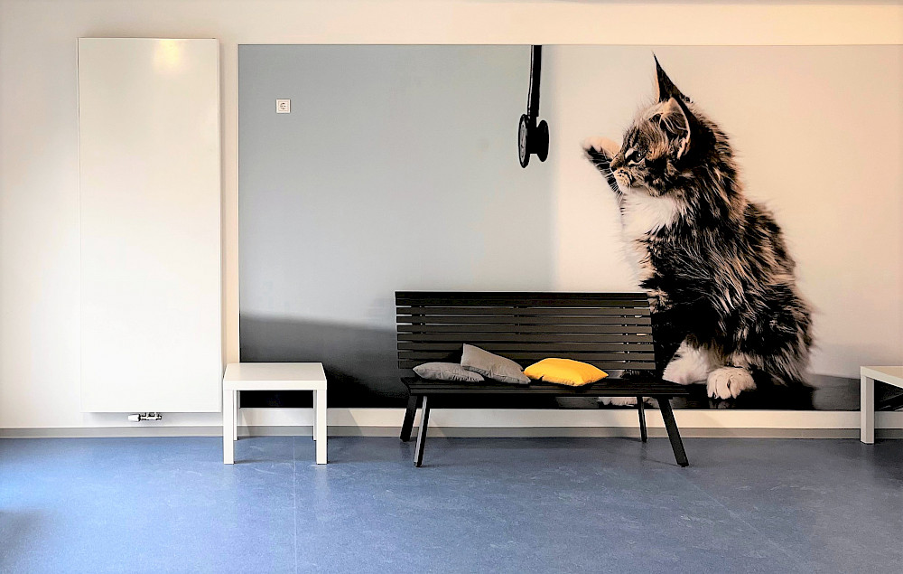 Der ehemalige Verkaufsraum des Supermarktes wird im Erdgeschoss zur Tierklinik umgebaut. Es entstehen große separate Wartebereiche für Hunde und Katzen.