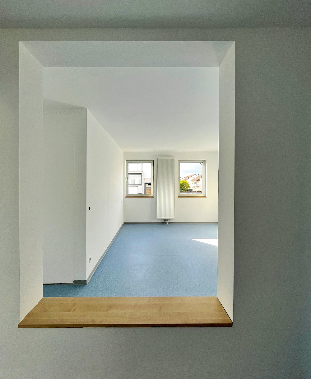 Der Bungalow aus den 70 Jahre wird bis auf die Grundmauern rückgebaut und neu konzeptioniert, erweitert und aufgestockt. Die neue Gebäudestruktur bindet das Kellergeschoss als Eingangszone in den Gesamtkomplex ein und führt den Nutzer in die Wohngeschosse. Die Aufstockung / das Panoramazimmer eröffnet den Blick über die Rheinebene.