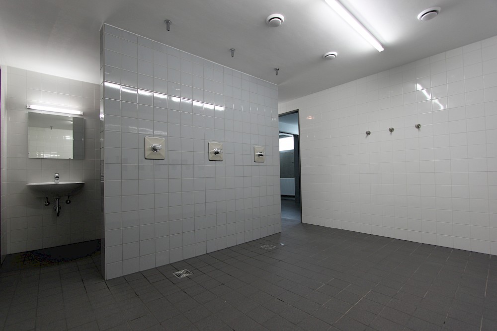 Im Obergeschoss sind Vereinsräume Umkleiden und Duschen untergebracht. Umkleideräume und Duschen werden von der Gemeinde und den Vereinen genutzt.