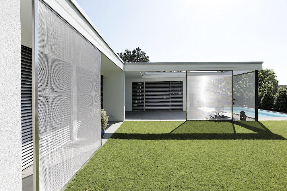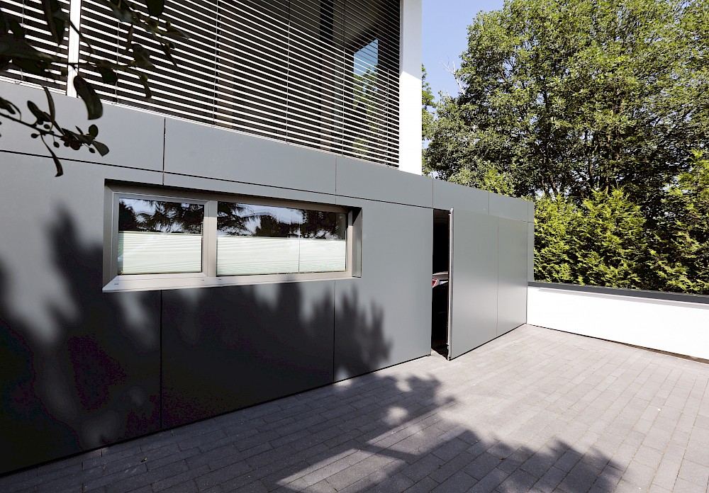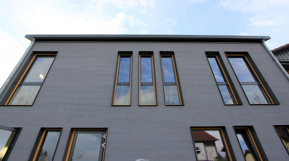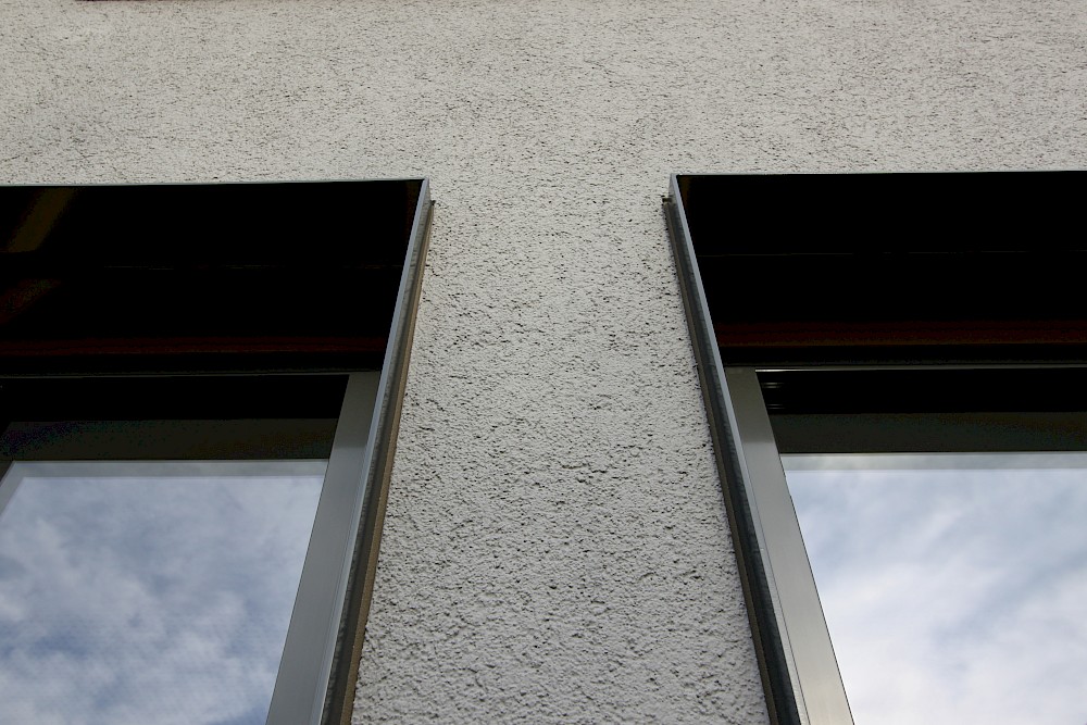 Die Gebäudehülle ist geradlinig, kompakt, ohne Gebäudeversprünge und hat ein durchgehendes Dach.
