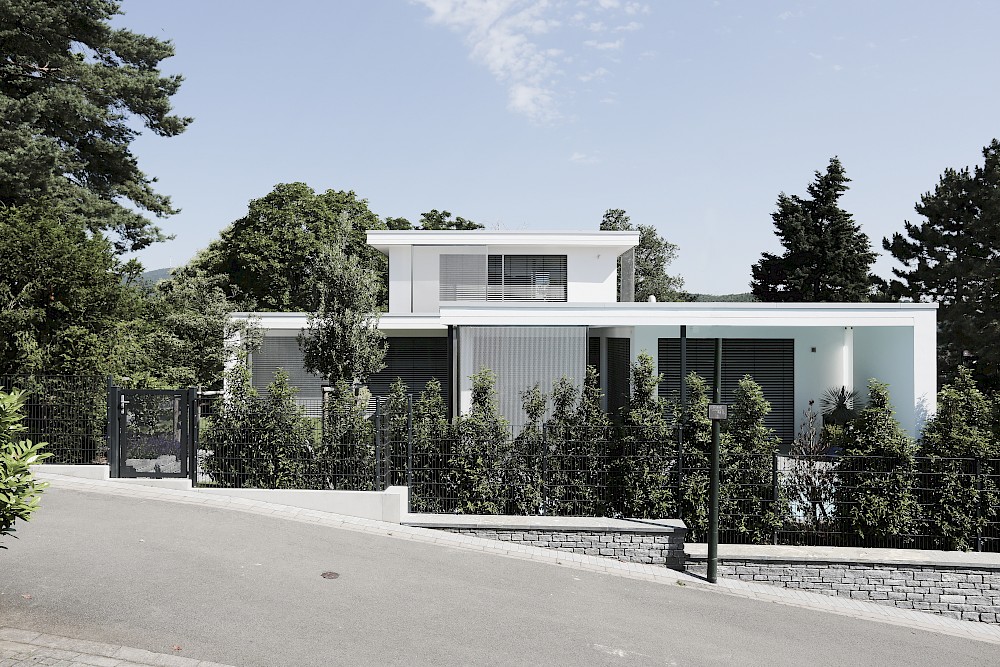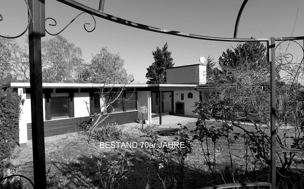 Der Bungalow aus den 70 Jahre wird bis auf die Grundmauern rückgebaut und neu konzeptioniert, erweitert und aufgestockt. Die neue Gebäudestruktur bindet das Kellergeschoss als Eingangszone in den Gesamtkomplex ein und führt den Nutzer in die Wohngeschosse. Die Aufstockung / das Panoramazimmer eröffnet den Blick über die Rheinebene.