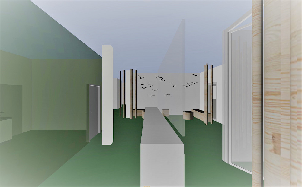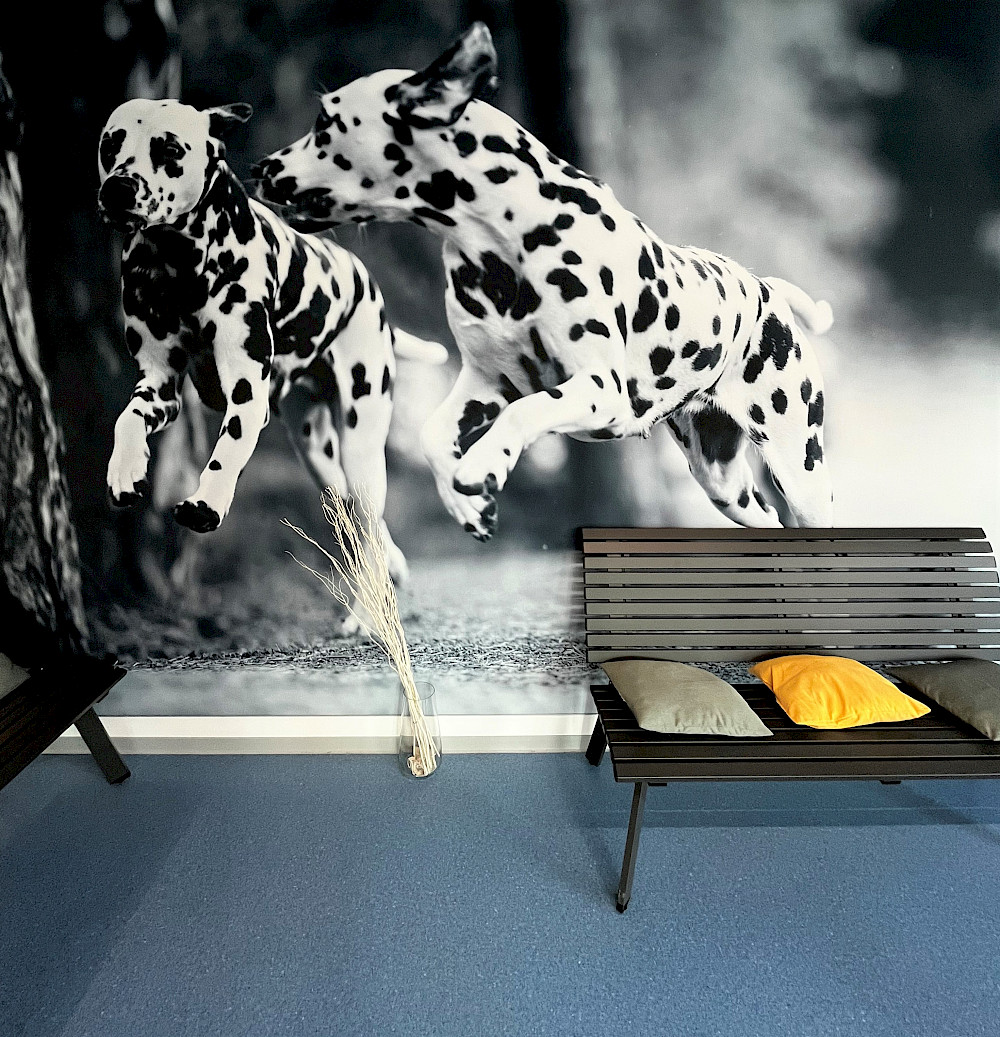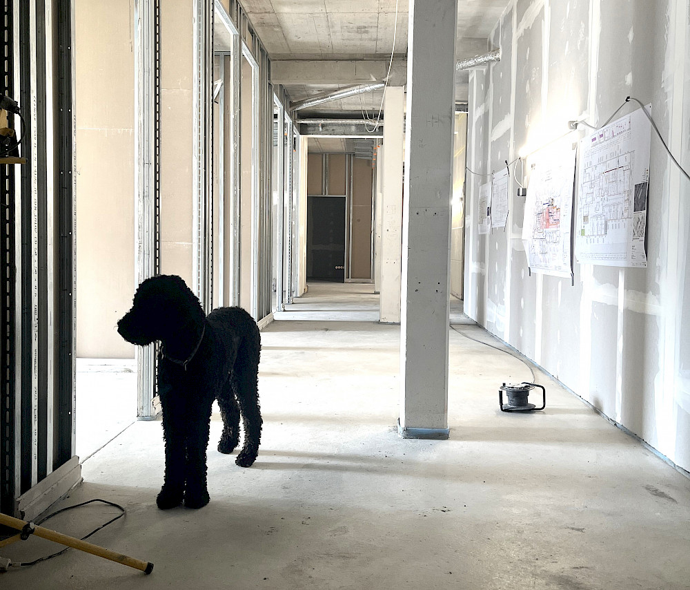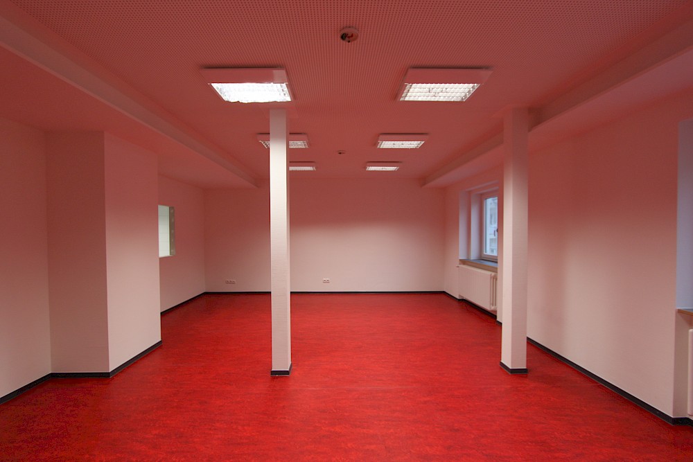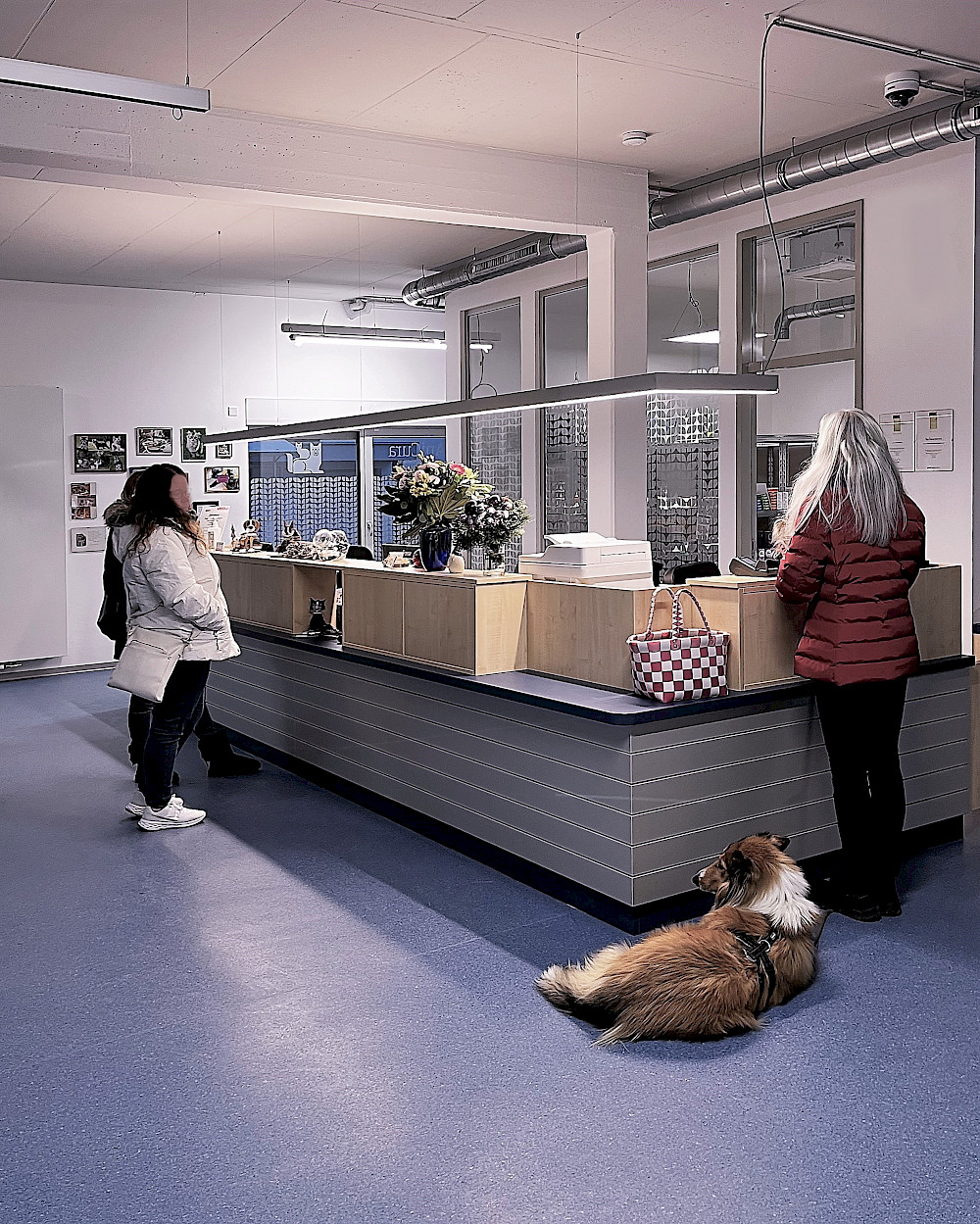 Der ehemalige Verkaufsraum des Supermarktes wird im Erdgeschoss zur Tierklinik umgebaut. Es entstehen große separate Wartebereiche für Hunde und Katzen.