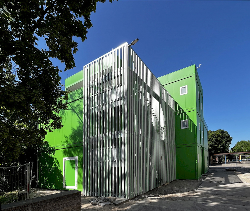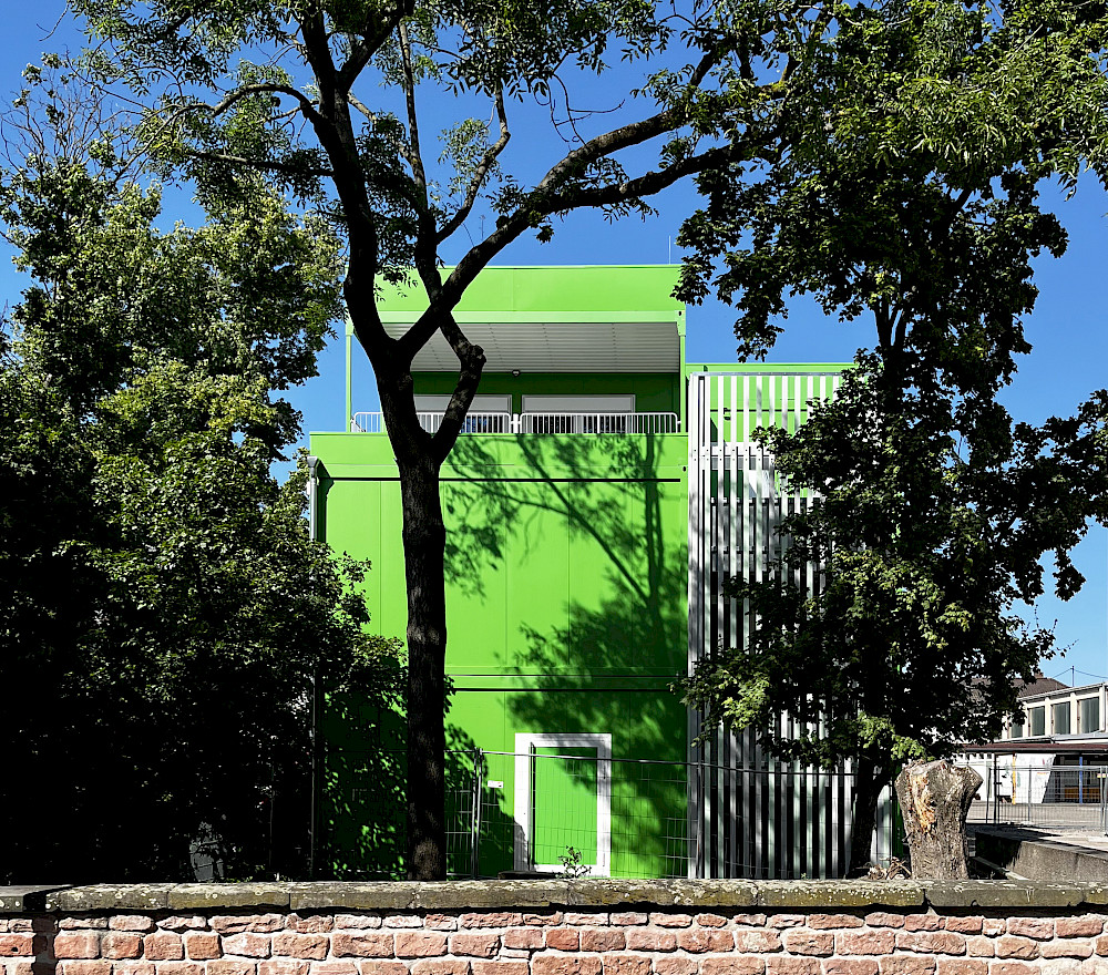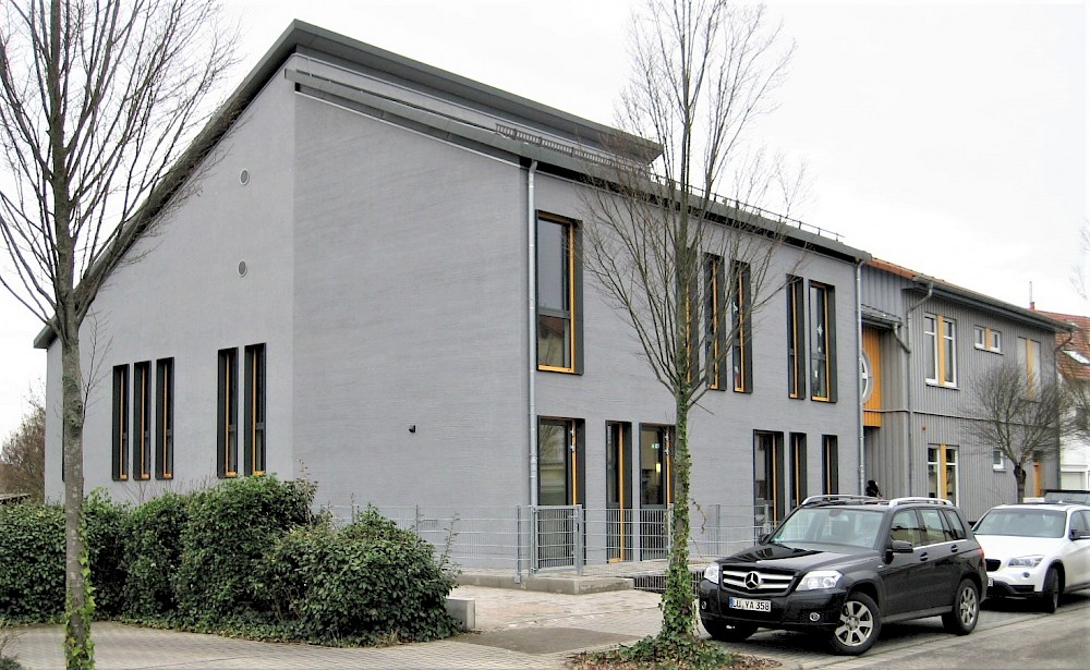 Erweiterung der Kindertagesstätte Karl-Dillinger-Straße 7, Ludwigshafen-Oggersheim, durch einen neuen Gebäudeteil.
